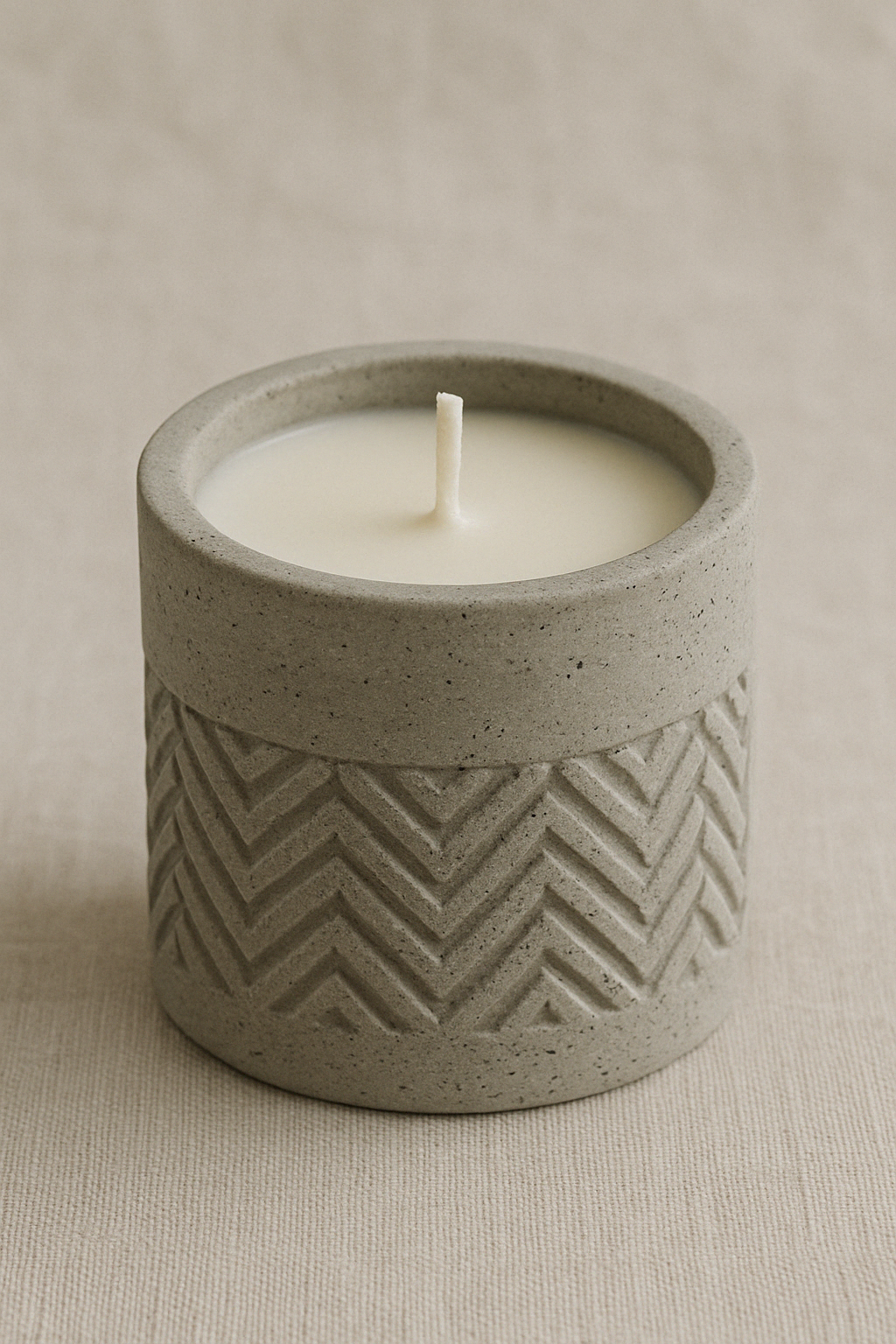 Chandelle moyenne en vase de béton et fait avec cire naturelle